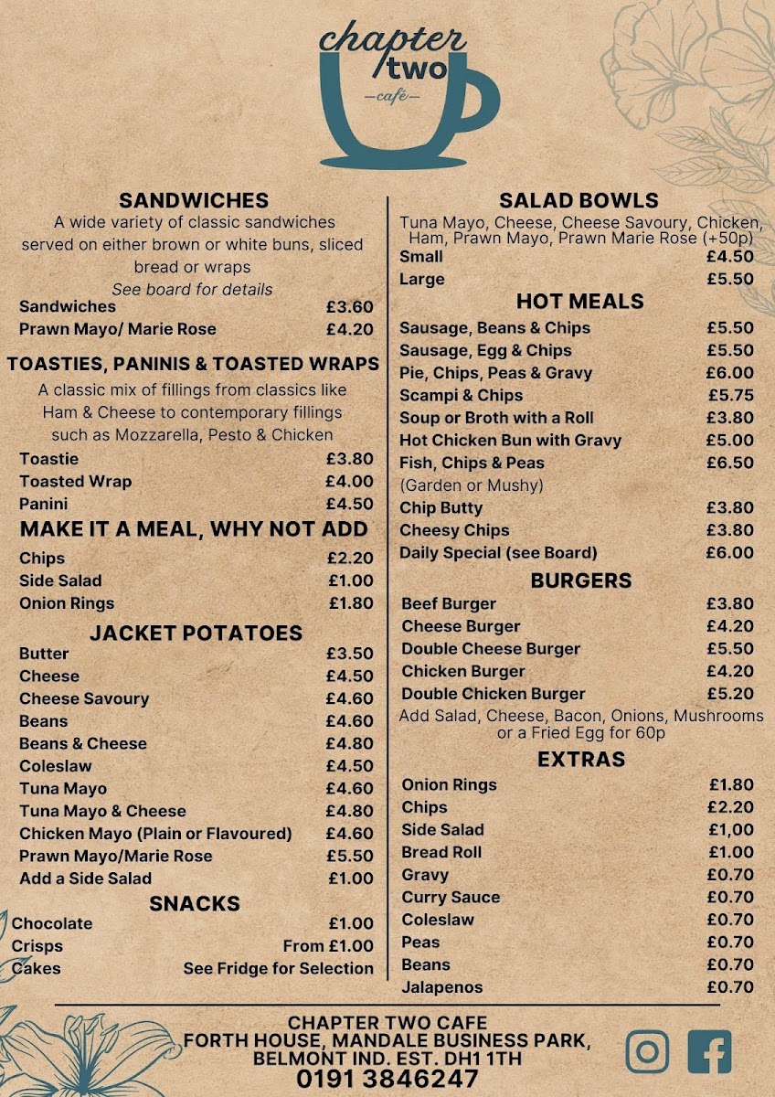 Welcome to Chapter Two Cafe, a hidden gem nestled in the heart of Mandale Business Park, Durham. This cozy cafe boasts a welcoming atmosphere, perfect for anyone from busy professionals to young families.